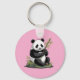 Trendy Cute Panda Bear With Greenery Bamboo Pink keychain
