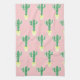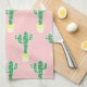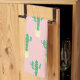 Trendy cute potted cactus patterned kitchen towel in pink.