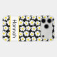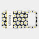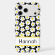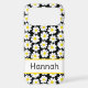 This iphone 17 pro max phone case is so cute and girly! It's modern trendy daisy floral pattern with multi-sized white and yellow daisies on a black background and your name in a fun trendy font will go with everything! It will look fabulous on your phone!