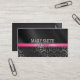 Striking damask card in black and pink. The illustration shows some interesting graphic effects. This card will look more striking if you choose a "pearlized finish paper stock" for maximum impact. Your name and title go on one side and address goes on the other side, where there is an interesting page curl effect. This is a chic, contemporary card that looks and feel professional.