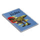 A greenish dinosaur with gaping mouth showing razor sharp teeth and gripping a sword with his little arms waiting for battle. Perfect for those little ones that love the dinosaur spirit. Can be customised with a name to make it uniquely yours.
