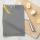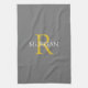 Trendy DIY Monogram & Name, Gold/White Text, Grey Tea Towel