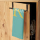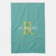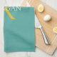 Trendy DIY Monogram & Name, Gold/White Text, Teal Tea Towel