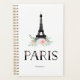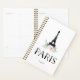 This beautiful planner features the Eiffel Tower decorated with watercolor look blush pink and white flowers with lots of green leaves, and the word "Paris" in elegant modern text.