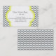 Trendy, classic, elegant, stylish, modern grey and white chevron business cards. For fashion, design, retail, cosmetic, girl, lady, female professionals, with sunny yellow decoration shape.