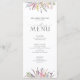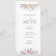 Create the perfect reception setting with this trendy 4"x 9" Trendy Elegant Wildflower Floral Watercolor Wedding Menu! Featuring a casual, beautiful arrangement of lilac lavender, blush pink, yellow and blue wildflowers and botanical greenery for a truly stunning look. Whether you are planning an outdoor garden ceremony or an indoor wedding reception, this menu will compliment your style perfectly. Customise your details and make it extra special with the addition of beautiful modern hand lettered calligraphy for a personal touch. Contact designer for matching products. View suite here: https://www.zazzle.com/collections/elegant_wildflower_floral_watercolor_wedding-119881521584127213 Copyright Anastasia Surridge for Elegant Invites, all rights reserved.