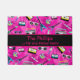 Cute and trendy, this doormat features a fun 80s style pattern. Featuring a pink background with colourful musical instruments, palm trees, sunglasses, etc. There is a pink and yellow box in the middle that states your family's name "...a hip and trendy family". Personalise yours today!