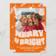 Trendy Fun Merry & Bright Orange Christmas photo Holiday Card