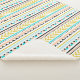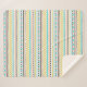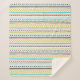 Sherpa blanket with gold yellow, aqua blue, white, black and peachy pink geometric pattern.