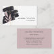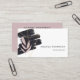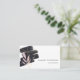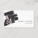 Abstract art business cards featuring black paint strokes with a gold geometric element and blush pink leaves.