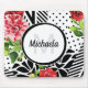 Trendy Geometric Stripe Pattern Red Foral Monogram Mouse Mat