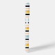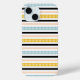 Beautiful iphone case with white, black, golden yellow, blue and peach stripes.