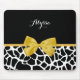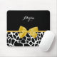 Trendy Giraffe Animal Print Yellow Bow With Name Mouse Mat