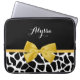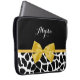 Trendy Giraffe Print Golden Yellow Bow With Name Laptop Sleeve
