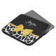 A trendy black and white giraffe print 15'' laptop sleeve with a girly golden yellow ribbon tied into a chic bow. Personalise this stylish animal print design by adding your name. Flat printed image, not actual bow.