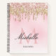 Elegant gold and black lettering monogram with a personalised name on a pink and gold glitter background.