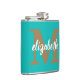 Trendy Gold Monogram Script Name on Turquoise Hip Flask