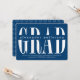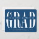 Big, bold stylised "grad" in classic, crisp white send on a medium grey background. Shown in navy and white, you can easily customise the background colour to match your scheme or theme. Trendy circle pattern coordinates on the back. A unique and modern graduation party invitation or announcement that's gender neutral and a great alternative to photo invites.