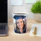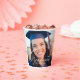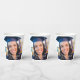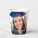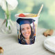This trendy graduation party paper cup features sophisticated handwritten white script over a chic full photo of your graduate. Customise this grad decor with your high school, college, or university photograph behind your senior details.