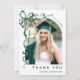 Trendy Green Bow Ribbon 5 PHOTO Graduation Thank You Card