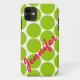 Trendy, Girly iPhone 5 Case you can personalise with your name in a pink cursive font on a bold, modern green polka dots pattern background. Elke Clarke Design© for iPhoneCaseGallery A great gift for her.