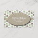 Stylish mummy networking card, done in a trendy tan and green polka dot pattern, on a white background. A double tan ribbon runs across the middle, with a tan oval text area, on top. Personalise the text for yourself, as a mummy card, or for your child. Great way to stay in touch with other moms and arrange play dates, birthday parties, and baby sitting co-ops.