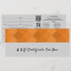 Introducing the Trendy Grey Black Orange Script Gift Certificate, designed with a diamond pattern in earthy orange hues, grey text field and black text on a generous 4" x 9" landscape format. The front features the graceful black script "A Gift Certificate For You," adding a touch of elegance.
