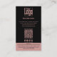 The back provides all essential salon information in a clean, organised layout against a black background with pink text: