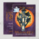 Purple, orange, white, light blue and yellow watercolor modern style creepy typography Halloween haunted house party invitation featuring a big haunted castle, ghost, skeleton, and owl. Personalise it on front and back! Suitable for trendy Halloween parties, couple showers or birthdays or other funny Halloween inspired parties. ------- If you need help in personalising it, please contact me!