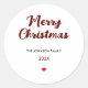 Red Handwritten Merry Christmas Classic Round Sticker