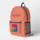 Custom Elegant Modern Cute Trendy Simple Template Upload Image Photo Picture Or Business Logo Add Handwritten Script Name Or Text Salmon Pink Orange Solid Colour Accessories / Bags & Wallets / Backpack.