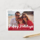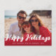 Trendy modern white happy holidays stylish script photo card custom template. Customise the text and image details.