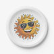 Trendy Happy Yellow Sun with Sunglasses Paper Plate
