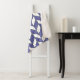 This sherpa blanket features an elegant chevron design with a geometric herringbone pattern in a trendy periwinkle shade with black lines.