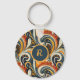 Trendy Hip Retro Orange Deep Teal Swirls Monogram Key Ring