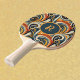 This trendy ping pong paddle sports a mix of modern and retro with colorful jazzy swirls and dots. Colors include a trendy vintage color palette of gold, light orange, deep orange, dark teal, blue, navy, black, and cream. Your monogram initial appears in a swirly typeface font in light orange encircled in a color block of deep teal blue. A coordinating ping pong ball is available.