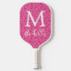 Trendy Hot Pink Glitter Monogram Initial Name Pickleball Paddle