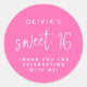 Trendy Hot Pink Script Sweet 16 Birthday Thank You Classic Round Sticker