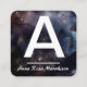 Design Size: Square - Curved Corners - Initial Monogram design business card. Pastel Nebula Galaxy Celestial Stars Black outer Space and SIMPLE WHITE MINIMAL Text.