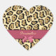 Trendy Jaguar Print With Pink Ribbon Bow and Name Heart Sticker