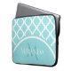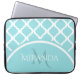 Trendy Large Aqua Quatrefoil Monongram and Name Laptop Sleeve