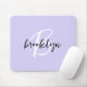 Trendy Lavender Black White Script Monogram Mouse Mat