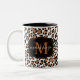 Trendy Leopard Animal Print Pattern Monogram Name Two-Tone Coffee Mug
