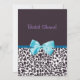 A portrait style trendy blue and plum leopard print bridal shower invitation with a cute pink ribbon bow wrapped like a present. Personalise to invite your guests to attend.