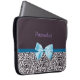 Trendy Leopard Print and Blue Ribbon With Name Laptop Sleeve