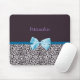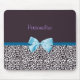 Trendy Leopard Print and Blue Ribbon With Name Mouse Mat