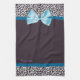 Trendy Leopard Print and Blue Ribbon With Name Tea Towel