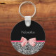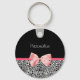 Trendy Leopard Print and Pink Ribbon With Name Key Ring