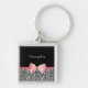 A trendy black and white leopard print keychain with a cute pink ribbon bow wrapped like a present. Personalise by adding your name. Perfect present for a teen girly girl!