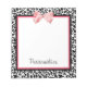 A trendy black and white leopard print notepad with a picture of a cute pink ribbon bow wrapped like a present. Personalise by adding your name. Perfect present for a teen girly girl! Flat printed image, NOT actual ribbon.